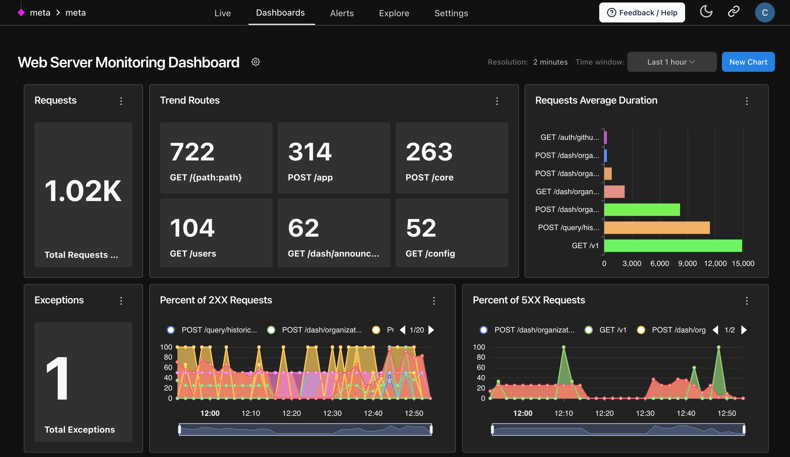 - Trend Routes: Visualize the most frequently accessed routes or APIs over time.